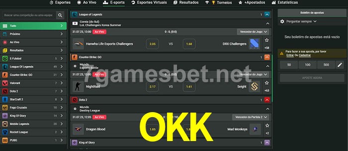 O OKK oferece uma grande seleção de opções de apostas em e-sports com probabilidades competitivas